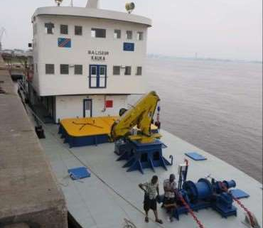 Le pousseur GUNGU entièrement réhabilité, une barge passagers et une barge cargo neuves. Les deux autres barges passagers neuves sont en cours de finition.