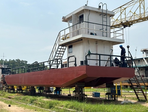 Février 2025, Fabrication en cours d’une barge motorisée type Chanitruck pour le WWF.