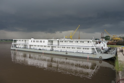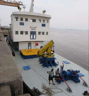 Le pousseur GUNGU entièrement réhabilité, une barge passagers et une barge cargo neuves. Les deux autres barges passagers neuves sont en cours de finition.