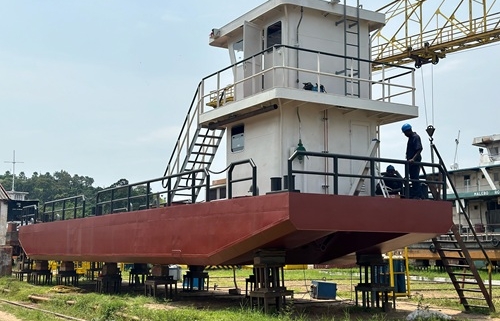Février 2025, Fabrication en cours d’une barge motorisée type Chanitruck pour le WWF.