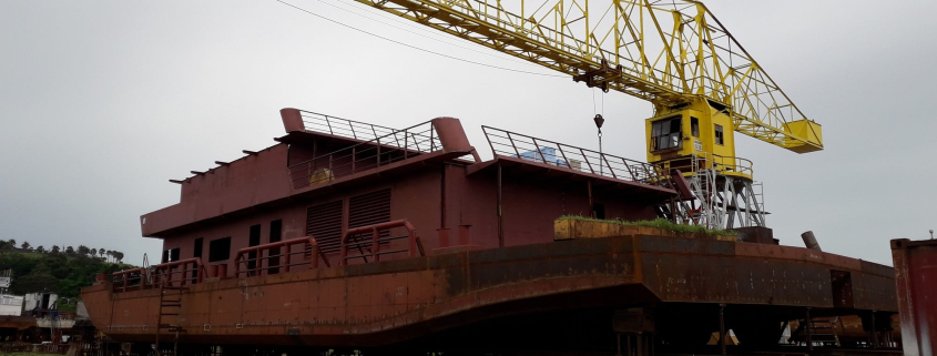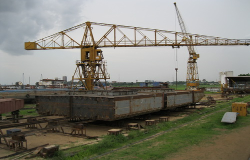 Mise à l’eau de la 5ième Barge pétrolière SEP CONGO classée VERITAS . Caractéristiques : capacité de 1200m³ repartis en 10 compartiments de 120m², longueur de 59,5M, largeur de 12M, creux de 2,25M et tirant d’eau de 1,8M.