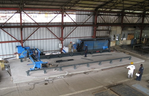 Cette nouvelle machine SAF type Eurotome est 5 fois plus rapide que la précédente et permet de découper avec précision n’importe quelle pièce hors tôle (acier ou inox) jusqu’à 50 mm d’épaisseur.