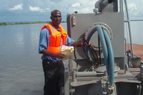Septembre 2021, Fourniture à Bracongo d’une station flottante de pompage à partir d’un ancien ponton de récupération.