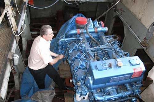 Travaux en cours de remotorisation drague SCEVN (2 moteurs 12M26SR de 660CV chacun et un moteur 6M26 de 350 CV).