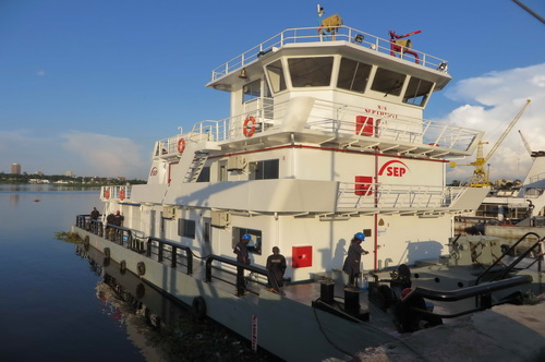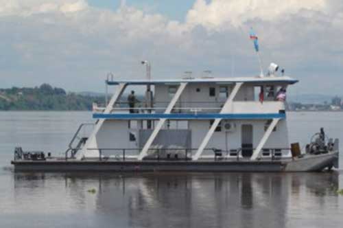 Le pousseur GUNGU entièrement réhabilité, une barge passagers et une barge cargo neuves. Les deux autres barges passagers neuves sont en cours de finition.